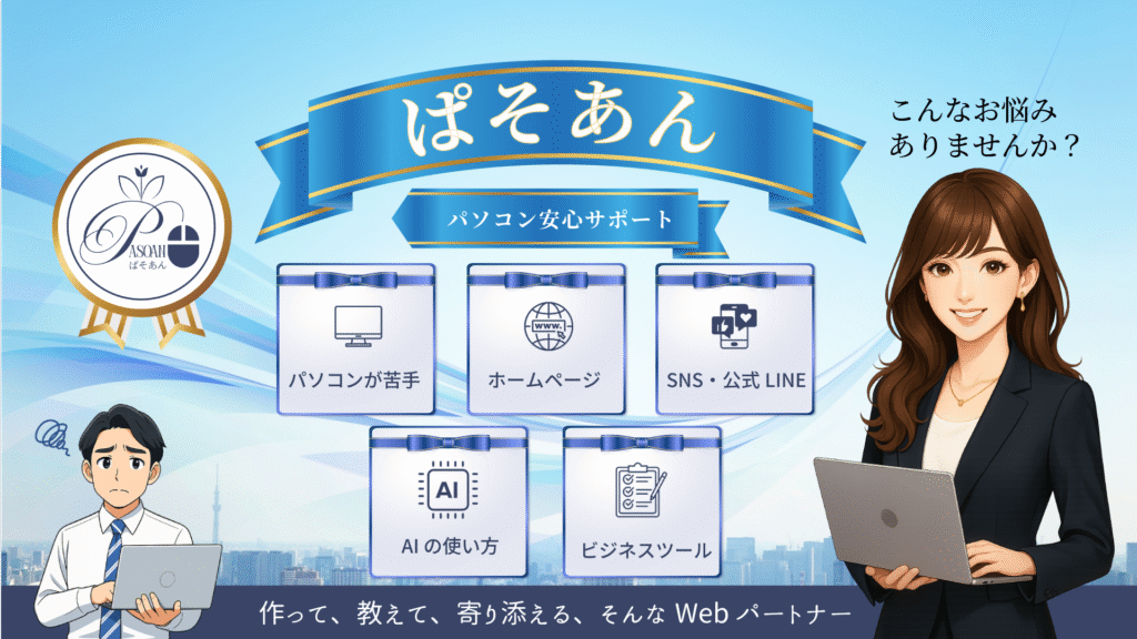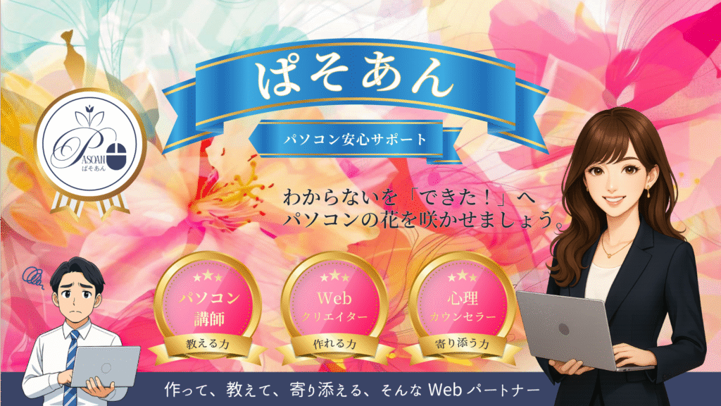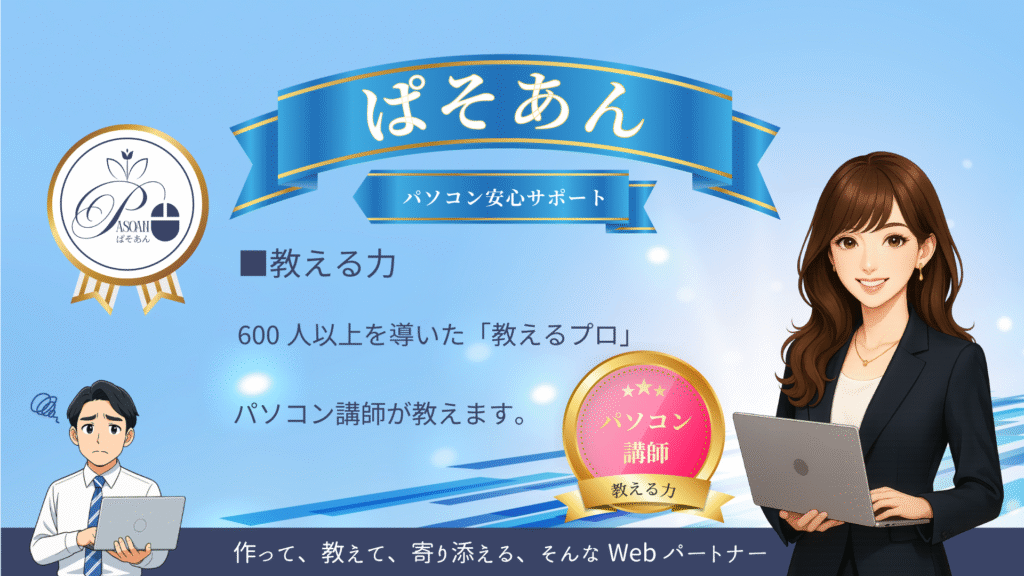 パソコン講師の経験を活かし、更新や操作も一緒にサポートします。